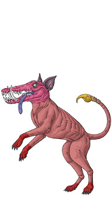 “It growled and snapped at him, raising it's barbed tail over its back like a scorpion's sting.”